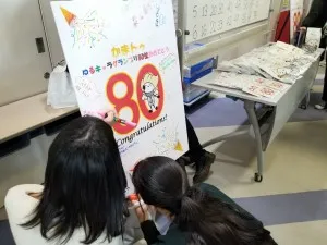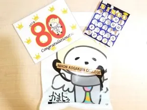 80位の記念グッズも作って投票をしてくれた学生のみんなに感謝を伝えたよ!