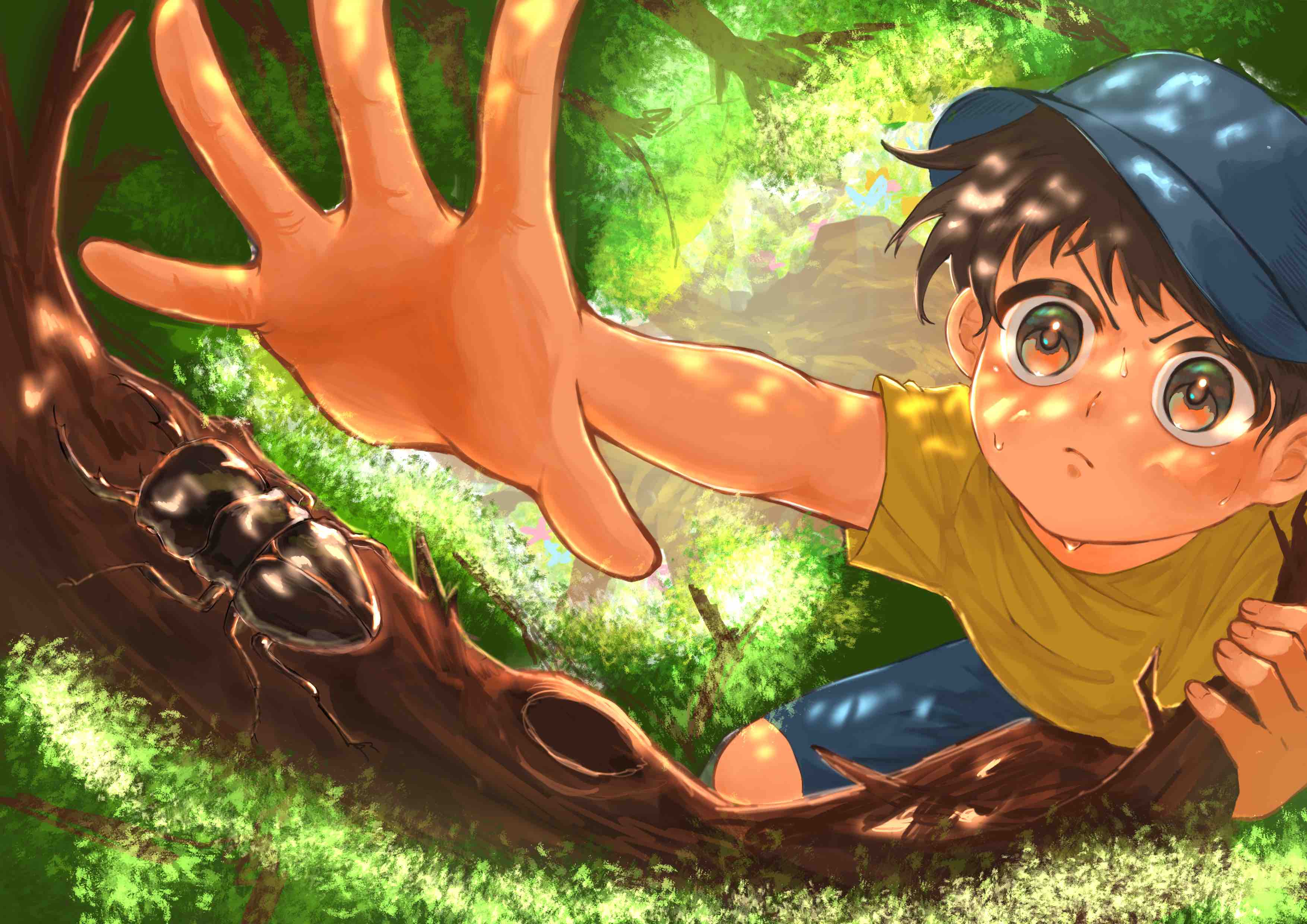 ダイナミックな構図に引き込まれます。クワガタが精密に描き込まれていることで、捕まえようとする手から今にも逃げていきそうな緊張感が生まれており、目が離せない作品でした。