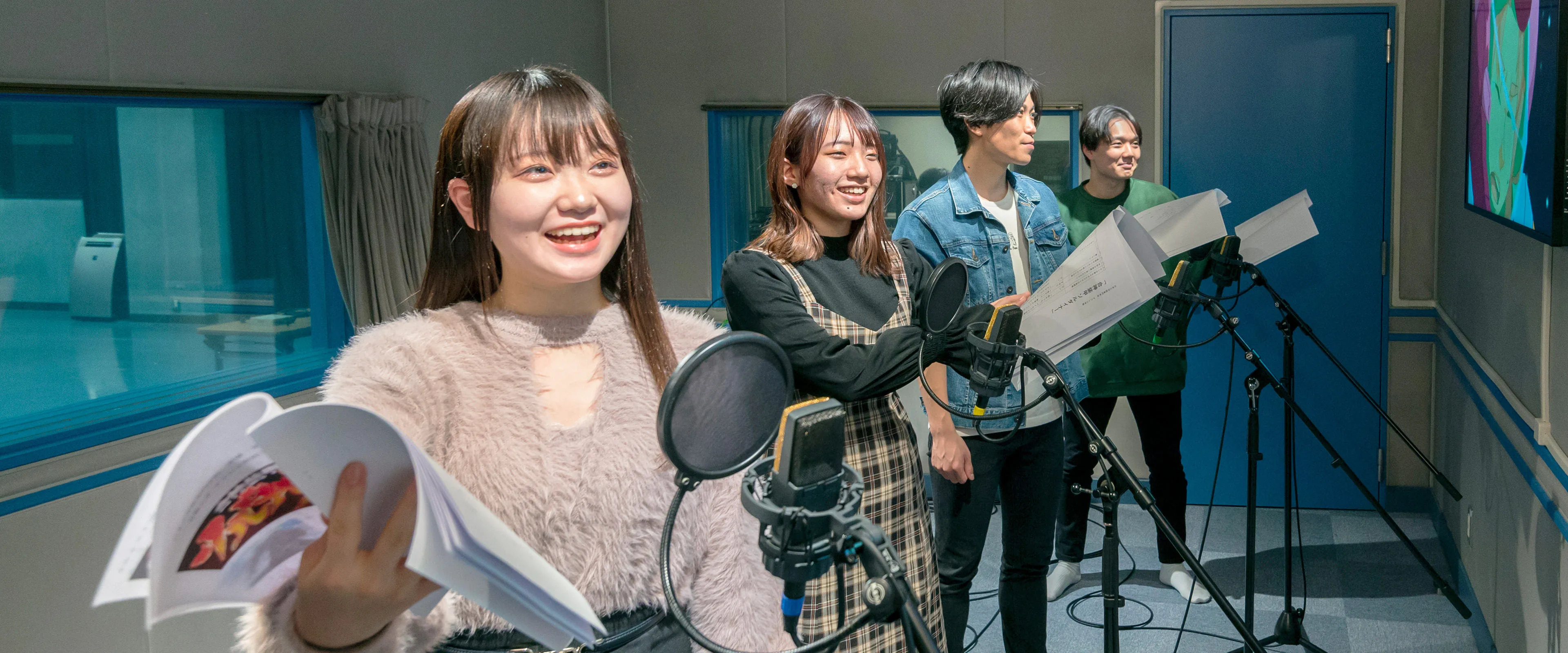 ゲームクリエイター科四年制/三年制/ゲームプログラミング科(2年制)の学生が制作するゲームに登場するキャラクターの声を、声優・演劇科の学生が担当しています。