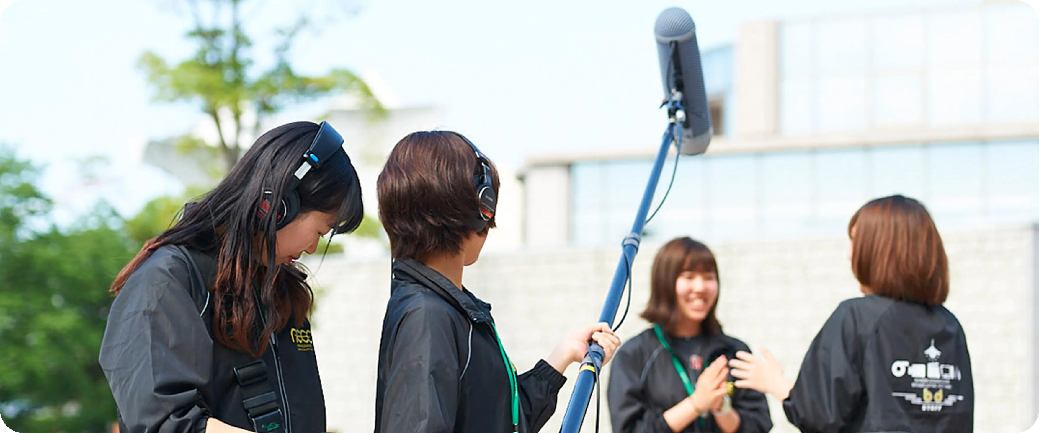 音声スタッフは、映像作品の音を「録る」から、シーンに応じて音を「創る」、スタジオやホールで音を「出す」(PA=Public Address)、編集された映像に音を「付ける」(MA=Multi Audio)まで、さまざま仕事を担っています。音声コースでは、この4つの役割を映像制作の流れの中で体系的に学べるようにカリキュラムを組み、実習を通してそれぞれのスキルを磨きます。