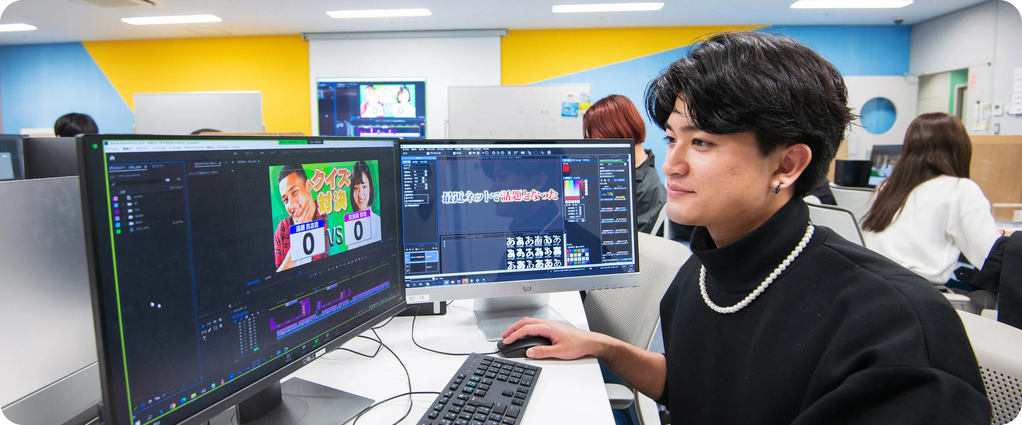 映像編集コースを設置する放送芸術科の学生作品について、詳しくはこちらのページでご紹介しています。