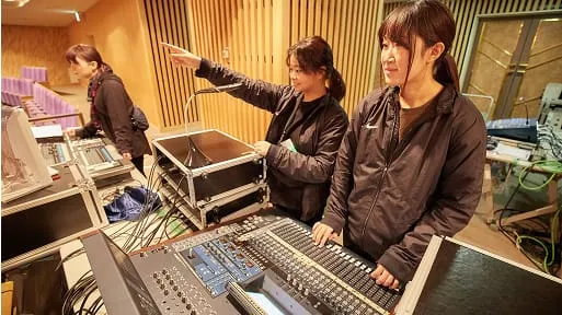 舞台スタッフの仕事を体感できるチャンス! 舞台監督・照明・⾳響・⼤道具など、舞台をつくるさまざまなセクションの中から、あなたの希望するスタッフになって、舞台公演のオペレートを体験できます。2.5次元ミュージカルについても詳しくご説明します。