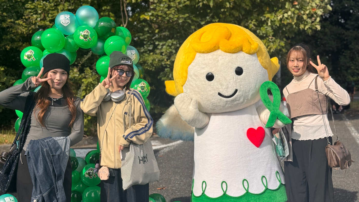キャンペーンブースにも訪問して【グリーンリボンキャンペーンの天使ハーティ】とも記念撮影を行いました!