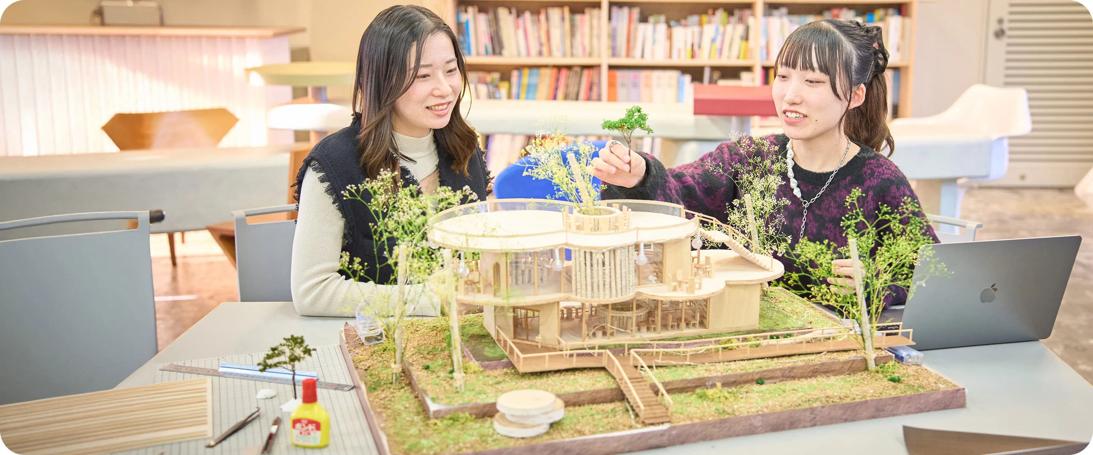 インテリアデザインのアイデア出しからプランニング、模型づくりまで、インテリアデザインのすべてのプロセスを学べる実習室です。