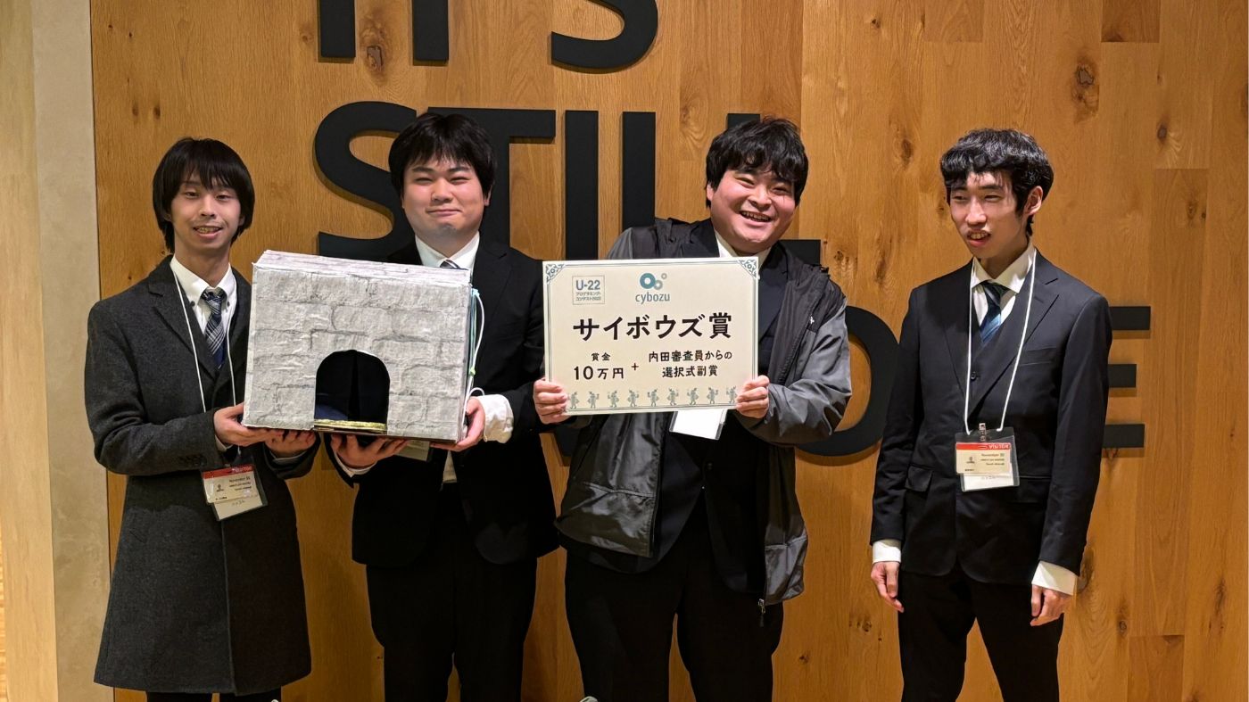 11月30日に、目黒セントラルスクエアのアマゾンウェブサービスジャパン合同会社にて開催された「U-22プログラミング・コンテスト2025」最終審査会で、ゲームクリエイター科四年制チームの学生作品2作品が見事受賞しました!