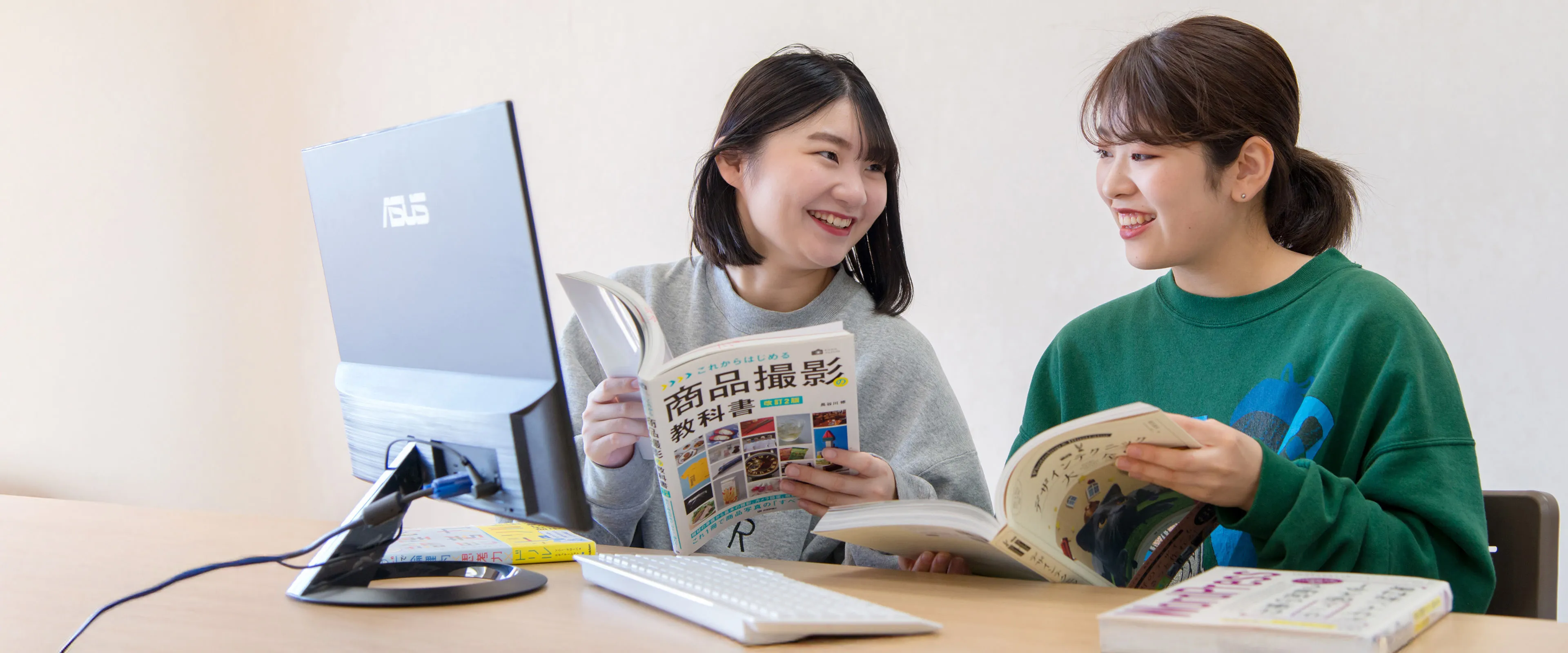 秘書・事務コースでは、仕事に必要なコミュニケーションスキルや企業会計などを学び、実務に近い接遇を習得します。eビジネスコースでは、ECサイトの開設・運営・プロモーション方法を学び、実際に在学中に開業をめざします。