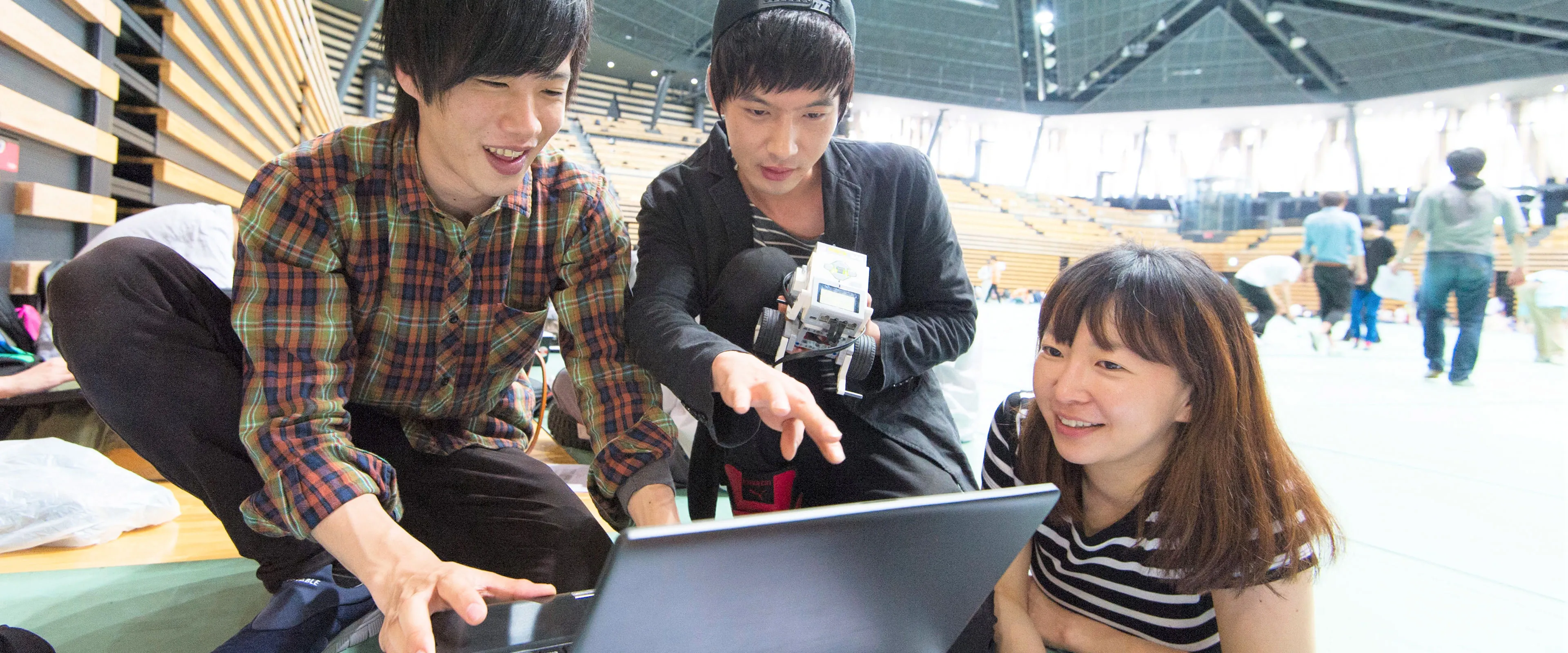 ITの基礎学習からグループ開発、実践的なプロジェクトまで、4年制学科ならではのワンランク上の教育を映像で紹介しています。