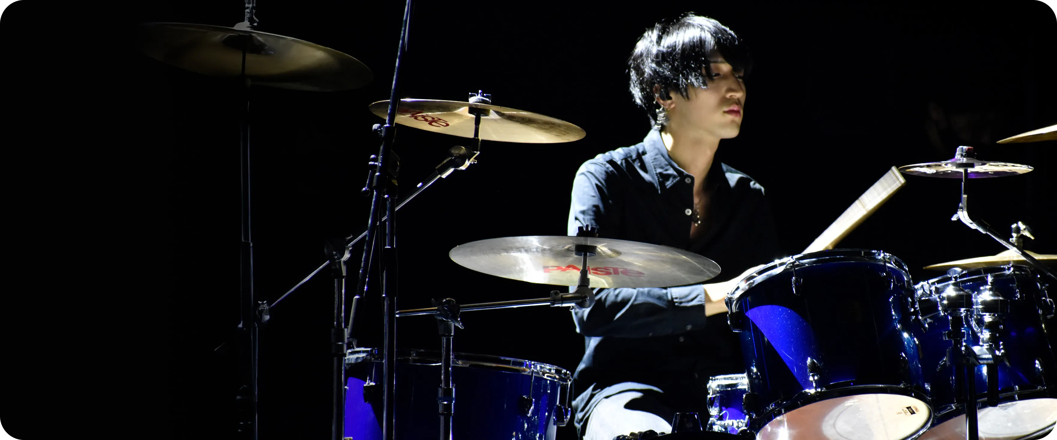 ドラム専攻では、リズムの楽しさを追求しながら、プロのドラマーとして必要なスキルを段階的に習得します。初心者から経験者まで、基礎から高度なテクニックまでを徹底的に学び、演奏の安定感と表現力を磨きます。個別レッスンでは、学生一人ひとりの目標に合わせた指導を行い、バンドセッションでは他の楽器と一体となる演奏技術を実践的に学びます。さらに、プロドラマーによる特別講義やワークショップを通じて、現場で求められるスキルや心構えを学ぶ機会も豊富です。ドラム専攻では、これらの実践的なプログラムを通じて、リズムの楽しさを深く理解し、総合的な音楽力を養います。