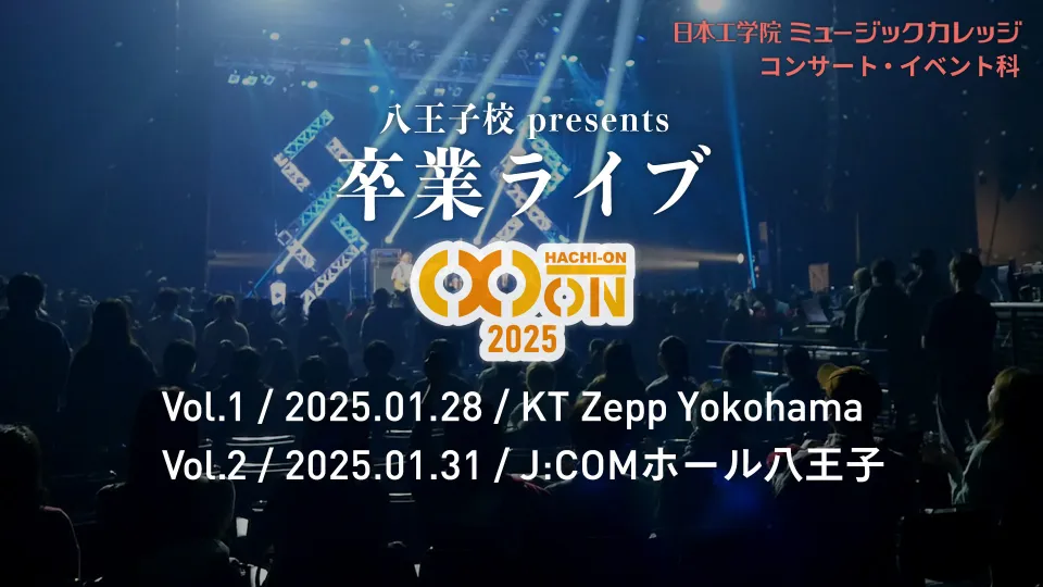 2年間の集大成として、コンサート・イベント科の学生たちは、企画制作からPA(音響)、照明、ステージ演出まで、すべてを自ら手がける卒業ライブを開催します。このライブは、学生たちが学んできた知識と技術を総動員し、プロの現場さながらの環境で行われる一大イベント。学生が主体となって進めることで、実践力やチームワーク、現場対応力を養います。観客を前にした本番の緊張感と達成感、そして本番を成功させるために全力を尽くす経験は、学生たちにとって忘れられない経験となり、次のステージへ進むための自信へとつながります。