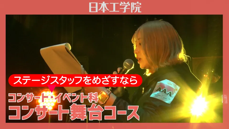 コンサートスタッフとしてプロフェッショナルをめざすための最適な環境がここにあります。コンサート・イベント科では、制作、音響、照明、舞台、イベント企画などの分野で専門知識と実践的な技能をバランスよく習得できるカリキュラムを提供しています。学内外でのライブ実習やインターンシップを通じて、実際のライブイベントの企画、制作、運営を経験。また、国内有数のコンサートプロモーターとの連携により、ビッグイベントにも参加する機会もあります。さらに、指導は現役のプロフェッショナルが行い、最新の設備を活用して業界の最前線で求められる技術を直接伝授します。ここでの学びが、あなたの夢を現実に変える第一歩となります。