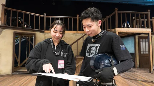 舞台監督は、舞台づくりを円滑に進めるための総指揮者。演出家や俳優はもちろん、照明や音響、大道具や衣装まで、すべてのスタッフの動きを把握し調整する力を、実際の舞台公演などを通じて養います。