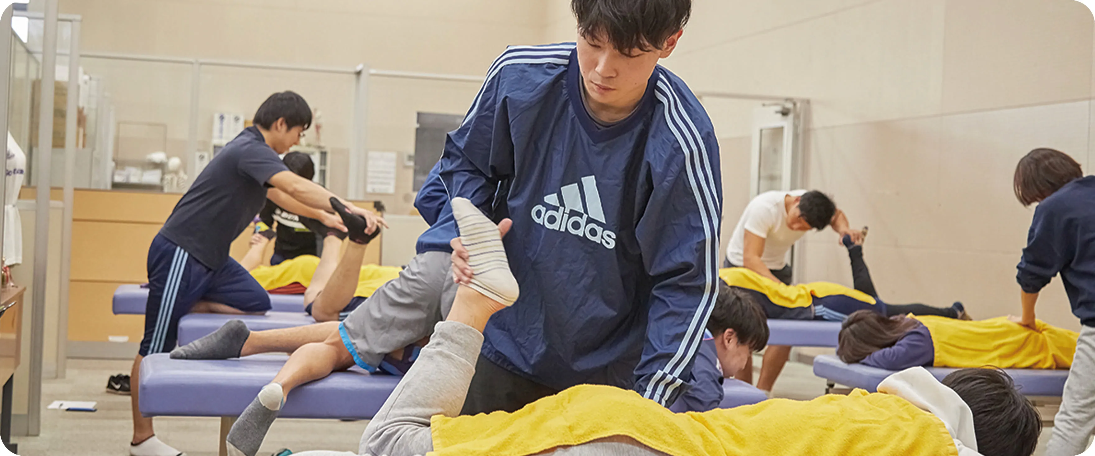 医療関連施設や介護施設、スポーツクラブなどでのインターンシップを経験し、メディカルトレーナーとしてのスキルとマインドを強化。トレーナー系資格の取得にも取り組み、即戦力となる実力を身につけます。
