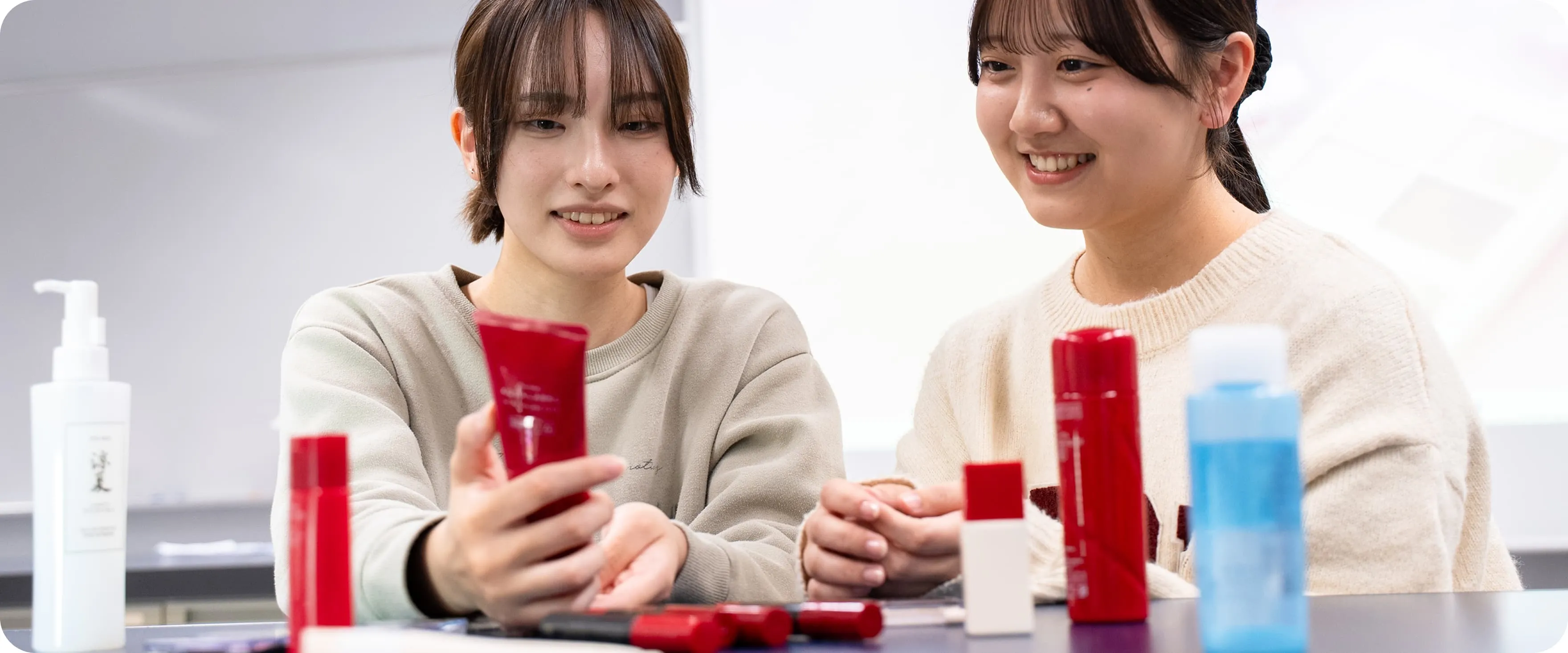 化粧品メーカーをはじめ、美容系企業、ショップなどのさまざまな現場で、品質管理や製造管理、分析、実験といった分野の専門技術者が求められています。応用生物学科化粧品専攻で培ったスキルと知識を生かして、化粧品・美容業界で多様な役割を担い、幅広く活躍することが可能です。