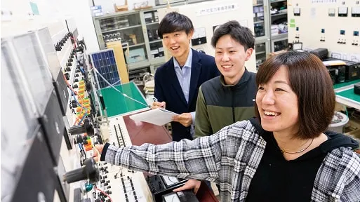 電子工学、電気工学、電気工事の分野で活躍するために必要な知識・技術を基礎から応用までを実習中心の授業で段階的に習得。さまざまな業界で対応できる、幅広いスキルを身につけます。