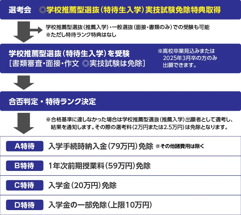 本校テニスコースは、全国専門学校テニス選手権大会で男子団体優勝14回をはじめ、各部門において常に上位入賞を果たしているトップレベルの実力を有する強豪チームです。つきましては、これをさらに強いチームにすることはもちろん、テニス/ソフトテニス業界で即戦力となるプレイヤーおよびコーチを育成するべく、下記の要領で特待生選考会を開催いたします。 後日、特待生試験受験の際に実技試験免除特典が得られるとともに、本人の実力がわかる絶好の機会です。本校テニスコースに入学意思がある皆さんのご参加をお待ちしております。