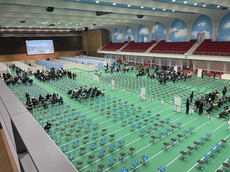 片柳アリーナが大田区のワクチン大規模接種会場として利用されました