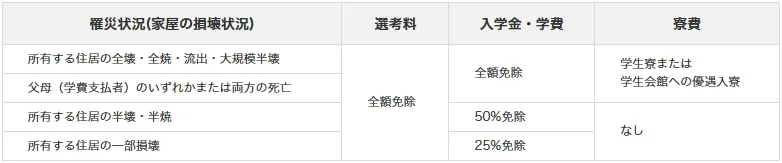 1.入学希望者本人、または父母のいずれかまたは両方が所有する家屋に関する罹災をされた方を対象とします。