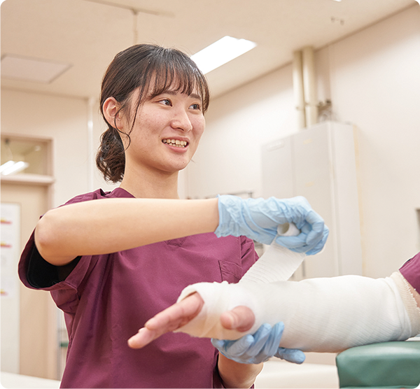 柔道整復師の国家資格取得を目指し、基礎から応用までを実習中心に学習。スポーツや福祉分野にも対応したカリキュラムで、附属施術所での臨床経験も積めます。資格取得支援も充実しており、幅広い分野で活躍できる力を養います。
