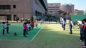参加対象は、毎月スポーツ活動のサポートを行わせていただいています、由井第二小学校の皆さんです。 ラケットを握ったことのない小学生へのレクチャーは、将来テニスコーチを目指す学生とっては、貴重な指導経験になります。