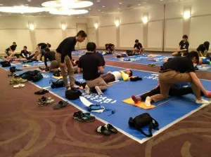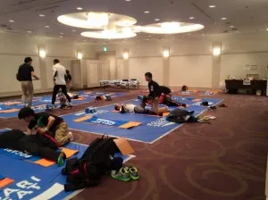 普段の実技授業や学内でのスポーツ現場実習で身に着けたストレッチテクニックを駆使してレース前のコンディション調整、レース後のリラクゼーションにフル稼働してきました!