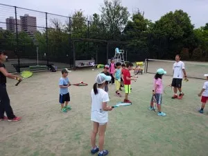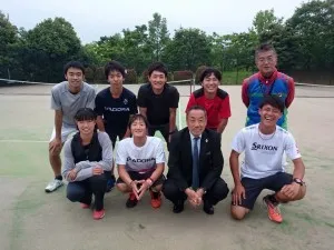 一般初心者、キッズ、ジュニアの3部構成にて開催され、坂井利郎 総監督も参加の元、テニスコース2年生の4人がコーチとして指導させて頂きました。