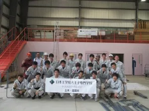 6/29(水) 2年生 土木実習の一環として、「若年技能者人材育成支援等事業」助成活動を活用させて頂き、東京都鉄筋業協同組合から「ものづくりマイスター(プロ)」6名による「鉄筋組立実習(体験)&講座」をキャンパス内 ものづくり工房にて実施いたしました。 ものづくりマイスター(プロ)の1名に日本工学院北海道専門学校 卒業生が講師として、指導いただきました。