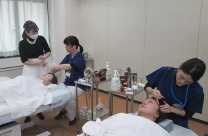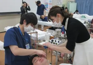 講座では岡本先生のデモンストレーションに加え、顔鍼スキルの実技実習も実施。