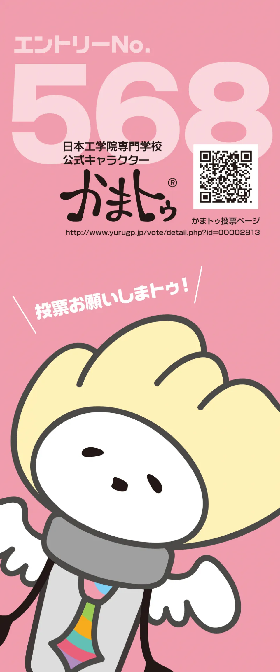 日本工学院専門学校公式キャラクター 「かまトゥ」と日本工学院八王子専門学校公式キャラクターの 「ぱっちぃ」が揃って、ゆるキャラグランプリ2017にエントリーします!ぜひ、応援してください。