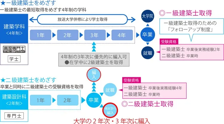 日本大学理工学部建築学科2年次編入、神奈川大学工学部建築学科2年次編入