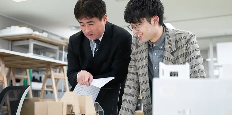 建築という裾野が広く、学ぶことも多い業界で、「10年先に何をやりたいのか」という視点から、学生一人ひとりの希望を踏まえ、建築業界に精通した先生たちが的確にアドバイス。建築が大好きで、将来建築家になりたい学生にとっても、大きな力になっています。今回は、テクノロジーカレッジの建築学科(4年制)から大学院への進学についてご紹介しましょう。