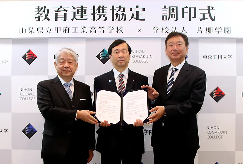 日本工学院専門学校および日本工学院八王子専門学校、東京工科大学を設置する学校法人片柳学園は、山梨県立甲府工業高等学校(山梨県甲府市)と、専門学校および大学との連携に関する協定を締結いたしました。