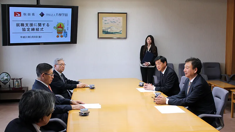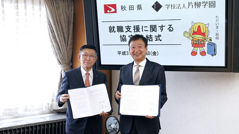 学校法⼈⽚柳学園(東京都⼤⽥区)は、秋田県と「Aターン(注1)就職⽀援に関する協定」を締結いたしました。