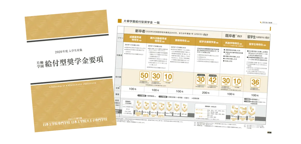 片柳学園給付型奨学金 「成績優秀者特待生」50万円受給