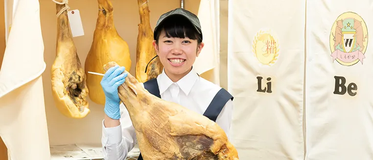 採用試験は大学生の中に混じって受けたので、最初のうちはとても緊張していました。でも、同じ土俵で競り合うなら、専門学校生の私の方が専門的な知識や技術を学んでいる分、有利だと考え直して気が楽になったんです。無理に勝たなくても、大学生と互角なら2年若い専門学校生の方が好印象になります。先生方の指導や生ハム作りで人と話すことに慣れていたので、集団面接にも落ち着いて対応できました。生ハム作りの話をしたら、人事の方が興味を持って聞いてくださり、大きなアピールポイントになりました。