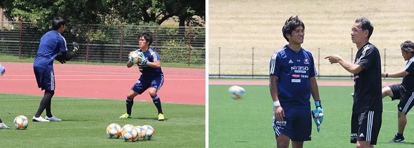 日本工学院スポーツカレッジサッカーコースのトップチーム、日本工学院F・マリノスのゴールキーパー・和田侑大さんが、Jリーグの名門チーム「横浜F・マリノス」の練習に参加しました。元日本代表選手であり本校講師の下川健一コーチをはじめ、マリノスコーチ陣の推薦により実現したもので、和田さんは、プロの選手とともに、実戦さながらの緊迫感のある練習を体験。プロをめざす選手として、有意義で貴重な経験をすることができました。