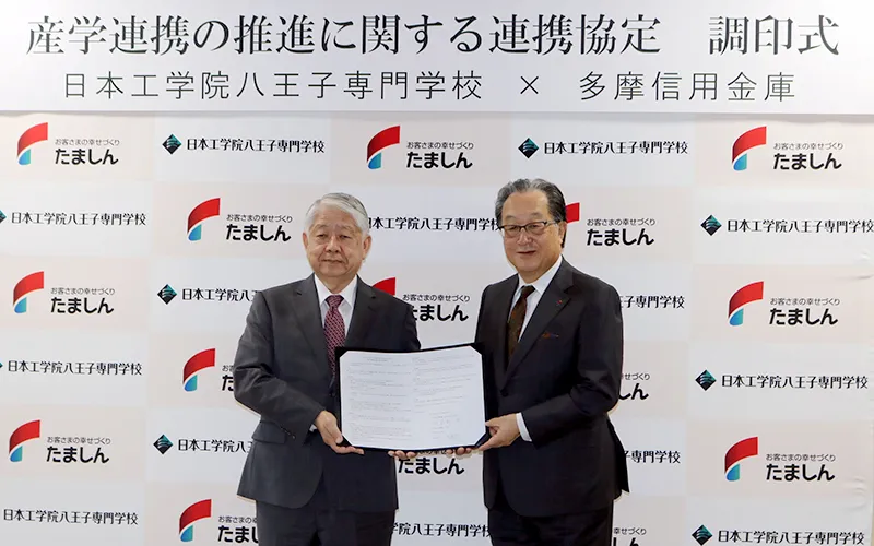 日本工学院八王子専門学校は、地域の課題発見や解決、地域で学んだ学生が地元企業に就職する「地学地就」などで、多摩信用金庫と連携協定を11月19日(火)に締結いたしました。同信用金庫と専門学校が連携協定を締結するのは、今回がはじめて(注1)となります。
