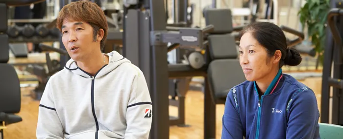 2018年にスポーツ健康学科テニスコースの講師に就任した久松志保先生と専任教員の久松亮太先生は、国内外の大会で輝かしい戦績を誇るプロテニスプレイヤーの姉弟です。授業を終えた二人に、プロとしての経験から学生に伝えたいことや、日本工学院の教育環境について聞きました。