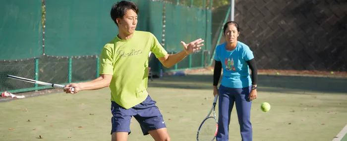 「学生たちには、長くテニスを続けられように無理のないフォームを身に付けてほしい。見た目にもきれいでカッコいいフォームは、身体への負担も少ないのでケガをすることもありません」