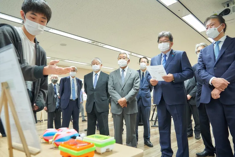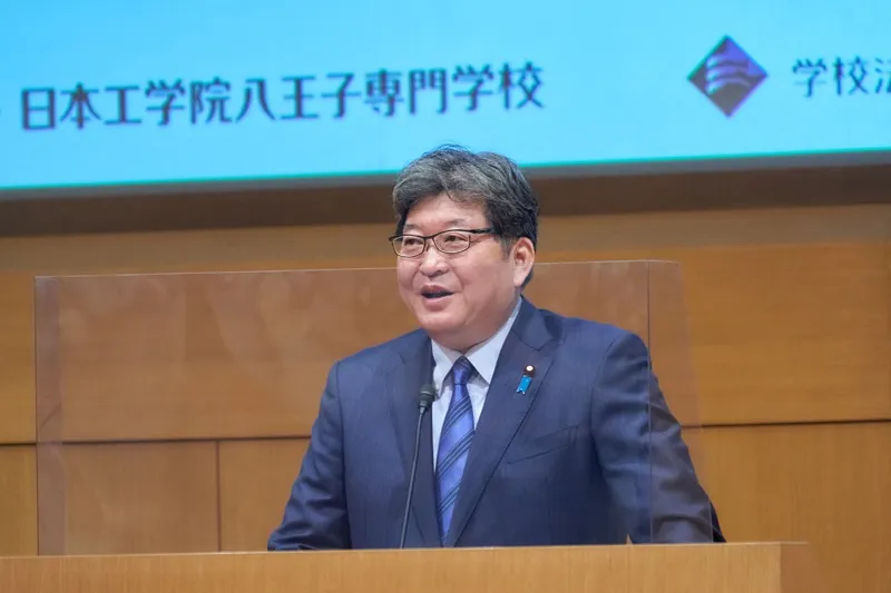 11月21日(土)、萩生田光一文部科学大臣が教育現場視察のため、日本工学院八王子専門学校に来校されました。萩生田大臣は、ITカレッジAIシステム科の実習で主に使用されている新施設「AI実践センター」を訪問。本校の最先端のAI教育環境を見学されました。また、各カレッジ・学科の取り組みパネルを見学いただき、テクノロジーカレッジの学生たちが直接、萩生田大臣にプロジェクト・学生作品のプレゼンテーションを行いました。