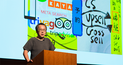 当日は会場の片柳記念ホールに情報ビジネス科の学生約250人が参加したほか、オンラインで約800人が受講し、星野氏の話に耳を傾けました。また、講義の後に行われた質疑応答では、星野リゾートに内定しているホテルコースの学生をはじめ多くの質問が寄せられ、活気あふれるやりとりが続きました。