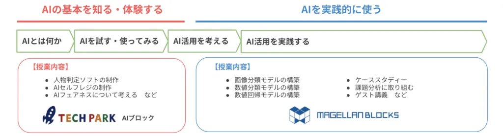 AIの基本を理解し実践的に使えるようになるまでを「AIとは何か」「AIを試す・使ってみる」「AI活用を考える」「AI活用を実践する」の4ステップを通して学びます。