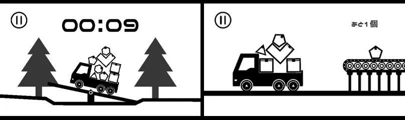 ゲーム概要:流れてくる荷物をトラックに乗せてゴールまで運ぶ