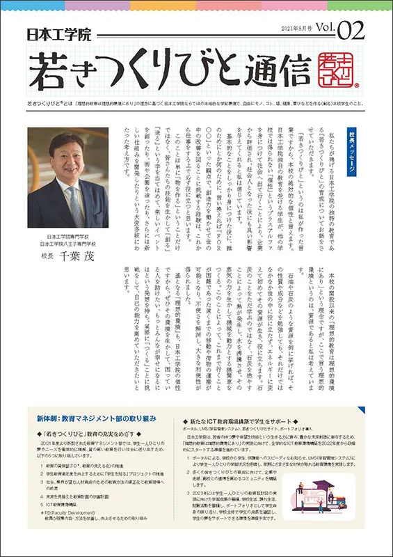 日本工学院の各学科の学生が授業の中で制作した課題、グループワーク、産学連携プロジェクトなどの学習成果、学校情報をお届けする「若きつくりびと通信」を発行いたしました。ぜひご覧ください。
