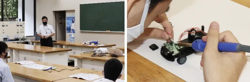 テクノロジーカレッジでは今夏、ものづくりに関わる仕事を分野にこだわらず体験できる『「ワクワク」するテクノロジー体験&お仕事発見ツアー』を開催。八王子キャンパスにて、高校1年生、2年生を対象に、感染防止対策のうえ行いました。