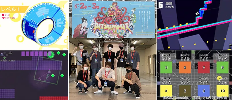 ゲームクリエイター科四年制の学生4チームが、9月2日・3日に京都市勧業会館「みやこめっせ」で開催された日本最大級のインディーゲームの祭典「BitSummit The 8th BIT」に出展。今回、みやこめっせの“オフライン会場”は新型コロナウイルスまん延防止のためBtoB(Business to Business)専用の会場となり、一般の観客はオンラインでの参加となりました。