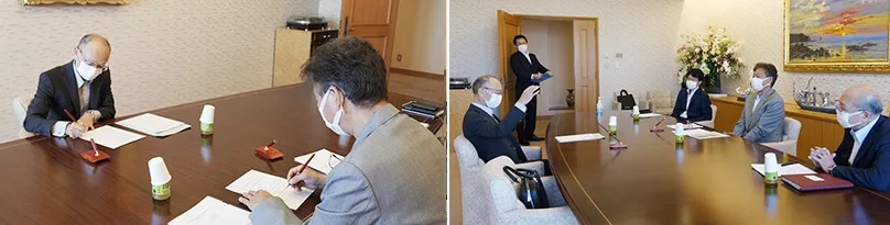 9月22日に日本工学院蒲田キャンパスで行われた締結式では、横浜創学館高等学校の梅澤一之校長と片柳学園の千葉茂理事長が協定書に署名を行い、日本工学院で培われたICT教育ノウハウの相互活用などについて意見交換を行いました。