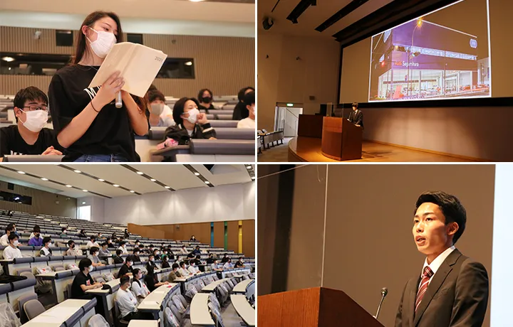学生たちはプレゼンの事前準備として、本校の特長でもあるコラボレーション授業のひとつ、声優·演劇科の先生による講義「ひとに伝える技術」を受講。発表した学生は、伝えたいテーマに熱い思いを乗せてプレゼンテーションを行うことができました。