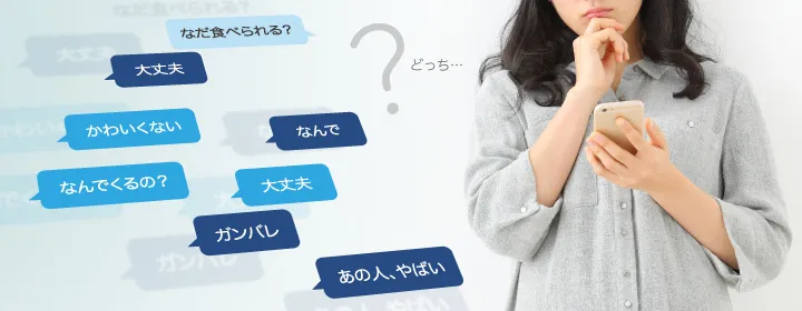 直接相手と話すときは、顔の表情や身振り手振りを交えてきちんと伝わる言葉でも、書き込む文章ではまったく違う意味に捉えられ、トラブルの元になる場合があります。「あの人、ヤバい」「なんでくるの」「かわいくない」など、受け手によって良い意味にも悪い意味にも変わってしまうことが多々あります。LINEやTwitterなどショートセンテンスで情報のやり取りをすると、そのニュアンスが非常に伝わりにくくなるので要注意です。