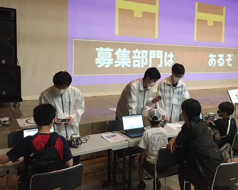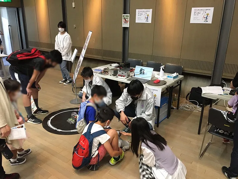 2022年5月28日(土)には、八王子クリエイトホールにて関連イベント「プログラミング祭」が開催され、学生たちが各専門分野を生かし、ブース出展の運営(プログラミング体験、ゲーム体験、ロボット体験)に協力いたしました。