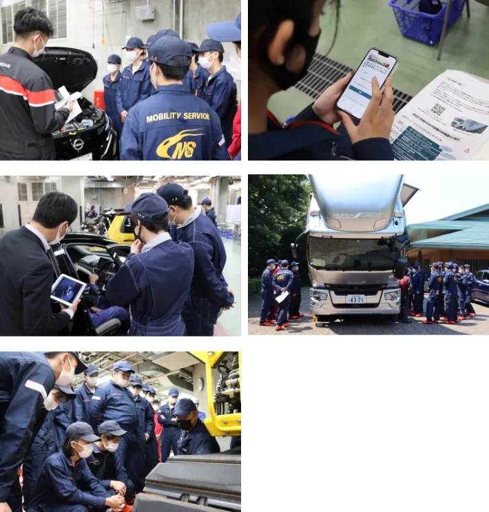 一級自動車整備科と自動車整備科では、企業や地域と連携を図った取り組みを強化しており、その一つが企業と連携した最新技術や業界を知るための特別実習です。昨年度はコロナ禍で数回しか実施できませんでしたが、2022年度は一級自動車整備科1.2.3年次と自動車整備科1.2年次を対象として、通年で13社の特別実習開催を計画。前期終了時点でも7社の連携企業の特別実習を開催する事ができました。参加した学生は、普段見ることのできない車種や建設機械の世界を堪能し、帯同している本校卒業生との交流の中で自身のミライ像を感じた実習となりました。